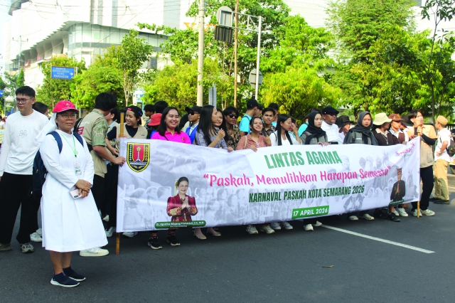 Dengan perlahan namun pasti para peserta Karnaval Paskah Kota Semarang berjalan meninggalkan Titik Nol Kilometer menuju Balaikota Semarang, 17 April 2026 siang. Paling depan adalah pasukan berkuda disusul pasukan pembawa bendera merah putih dan rombongan yang memegang kain merah putih sepanjang 100 meter. Sementara di belakangnya para peserta dari berbagai kontingen mengular sesuai urutan. Karnaval diikuti oleh siswa-siswa sekolah, gereja-gereja, yayasan-yayasan, bahkan kelompok lintas agama.